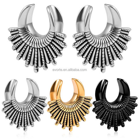 Evorte paslanmaz çelik Punk Vintage eyer kulak tak askı lob küpe benzersiz U şekli kulak ağırlık göstergeleri tünel Piercing takı
